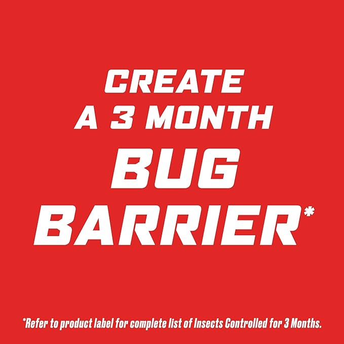 - Creates a 3 month bug barrier, protecting against ants, fleas, cockroaches, spiders (excluding black widow), house flies, scorpions, and American dog ticks