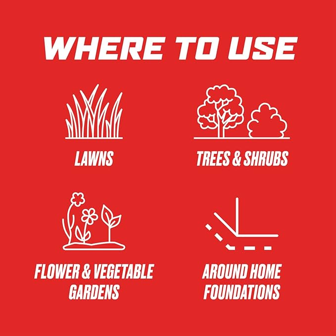 - Use on roses, ornamentals, vegetable gardens, trees and lawns when insects or damage first appear