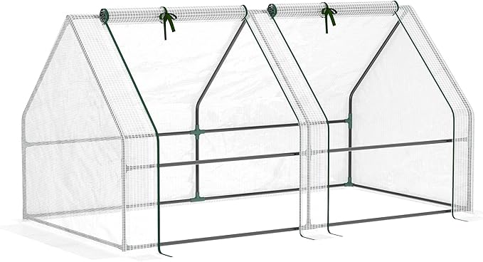 Outsunny 6' x 3' x 3' Mini Greenhouse with Zippered Doors & Roll-up Windows, Portable Plant Hot House with Durable PE Cover, Water Resistant, UV Protected for Outdoor Flowers, Vegetables, White