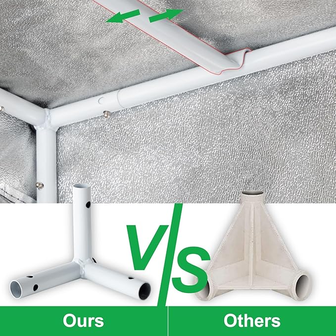 - 【STURDY STRUCTURE】This growing tent features heavy duty all steel structure which are rated to handle at least 110 lbs. Premium metal poles and Upgraded corner connectors is specially anti-rust reinforced finished to lock the structure securely in place, ensuring smooth installation and safe handling