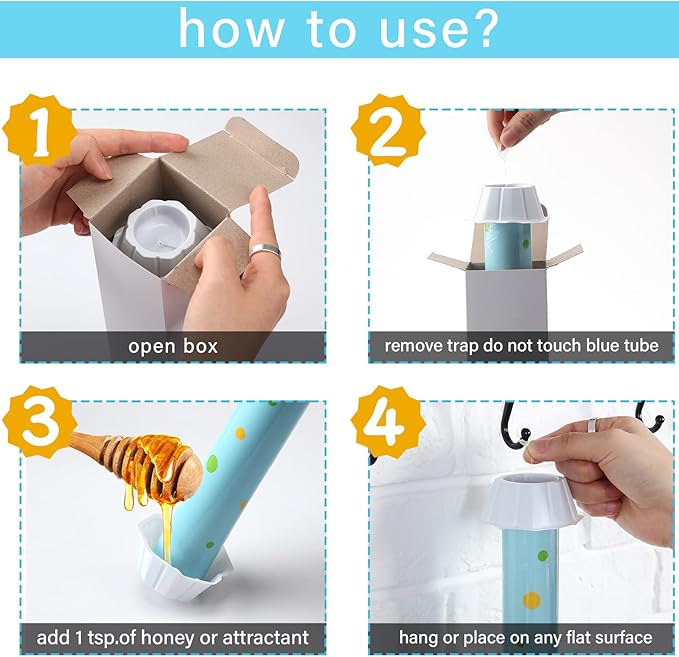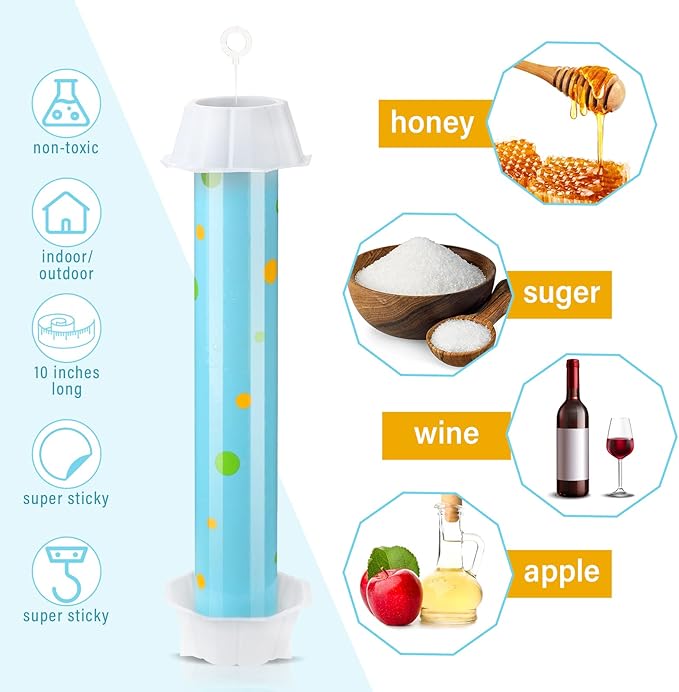 - Easy to Use: simply hang fly trap stick wherever you want, put honey, sugar or other attractants on the bottom, and then you can leave; When you come back, remove the fly trap and throw it in the trash without worrying about getting your hands dirty; Be careful not to touch the sticky surface if possible, as it may stick to your hands
