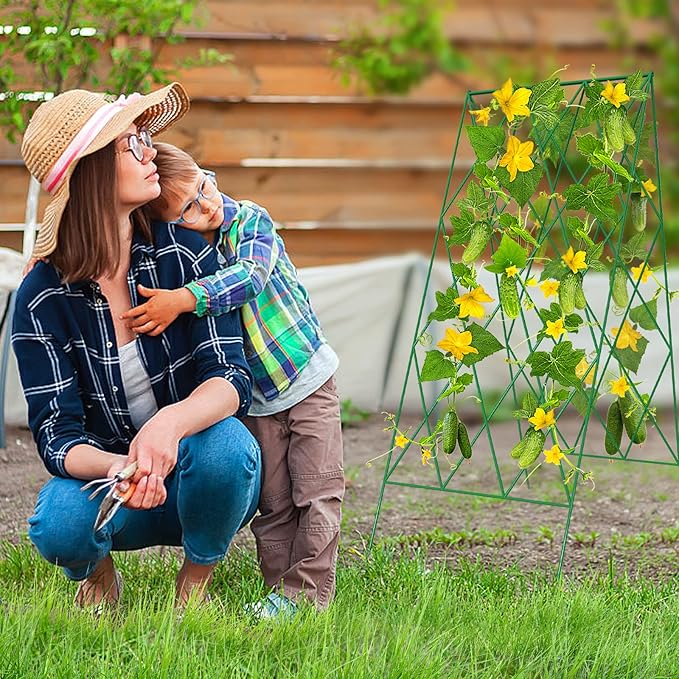 - A-FRAME DESIGN -- A-frame cucumber trellis can grow various plants from both sides of the trellis. These shapes promote airflow for the climber, and the plant will have plenty of sunlight to maximize photosynthesis. Let you get a better harvest.