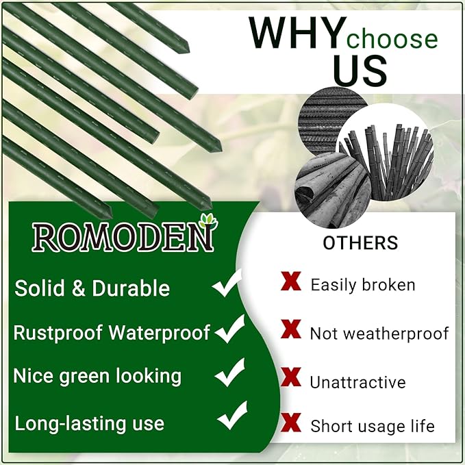 Garden Stakes 48'' Plant Sticks, 50PCS Plastic Coated Steel 4ft Plant Stakes Support for Growing Climbing Plants, Tomato Stakes Gardening Supplies