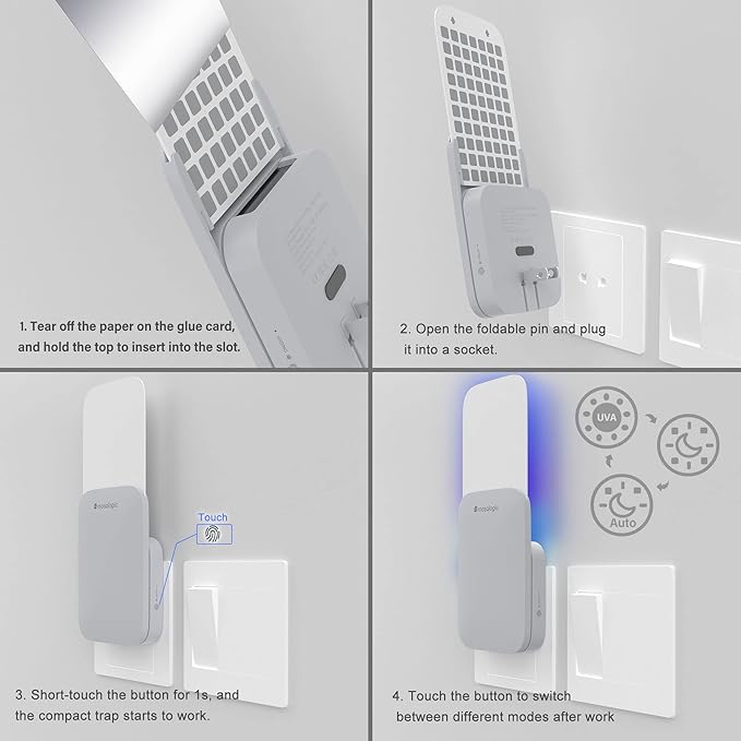 - Multifunctional Insect Trap: Fly killer is a powerful tool for capturing flying insects such as mosquitoes, bugs, moths, fruit flies, gnats, and more. With its UV light technology, the trap lures insects towards it and once they reach the surrounding, they become trapped on the glue board with no chance of escape. Additionally, the trap doubles as a night light, making it a helpful sleep aid.