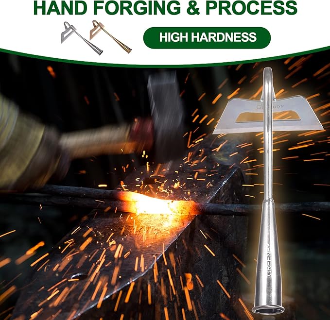 - 🌱【Hand Forged】- Made with 100% Stainless Steel, this weeding tool is forged from manganese steel and built to last. The steel is hardened to provide exceptional strength and reliability in even the toughest gardening conditions.