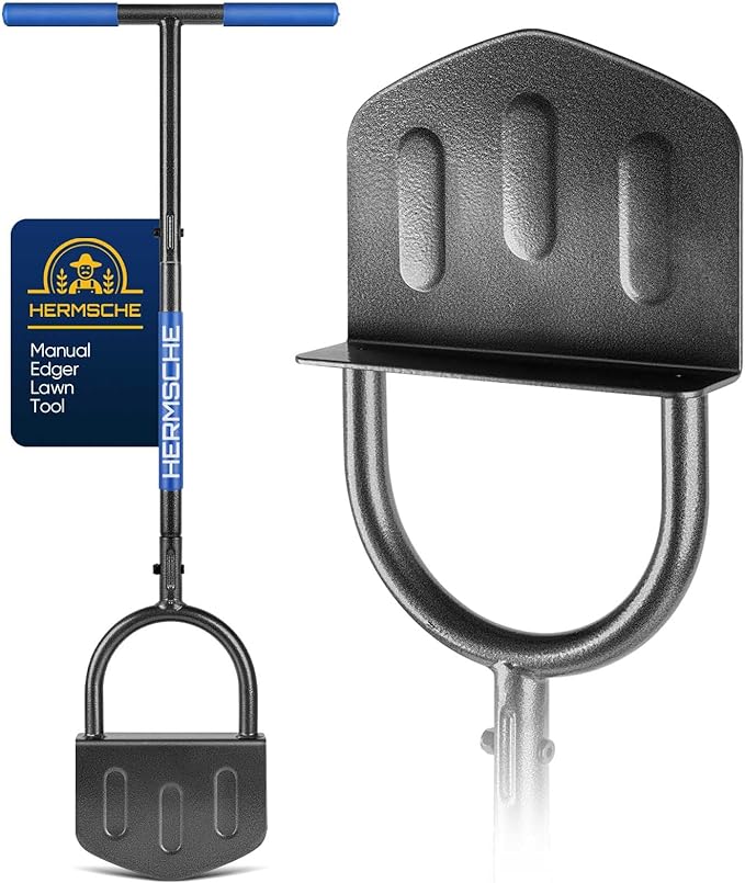 - Perfect Garden Tool - Hermsche Hand Edger is designed with half-moon-shaped steel sharp blade that can easily cut through dense grass by inserting it into the soil. Our Manual Lawn Edgers are simple and efficient to use, which is the best choice for gardens, lawns, ditches, sidewalks, driveways to creat clean and tidy edges.