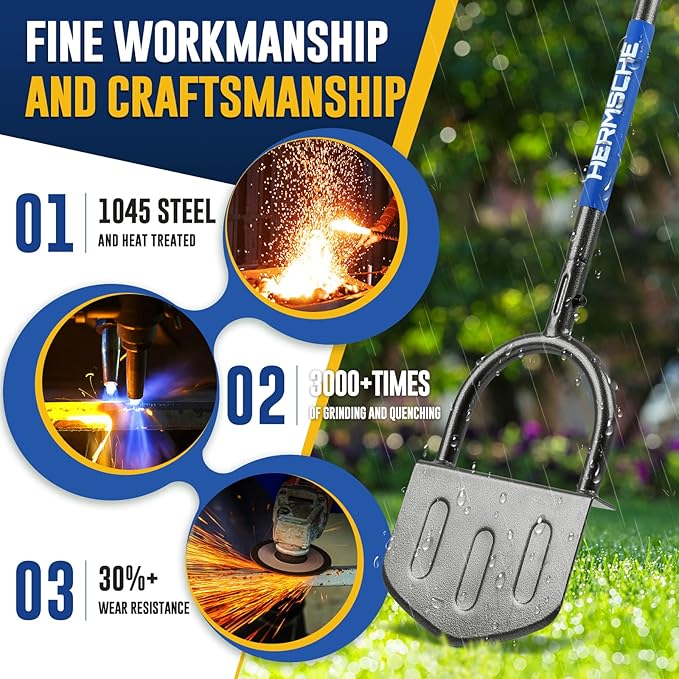 - Sturdy&Durable - Gardening Edger Tool is made of excellent steel welding construction. The head is heated treatment by 1045-gauge stainless steel with anti-corrosion and anti-rust function. The joint structure can load up to 130lbs, not bend or break easily. High-quality Manual Grass Edger will withstand the test of time.