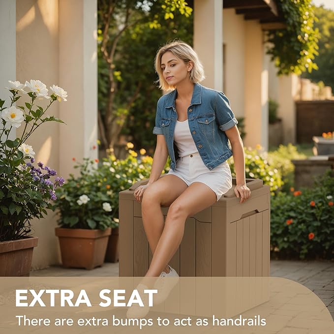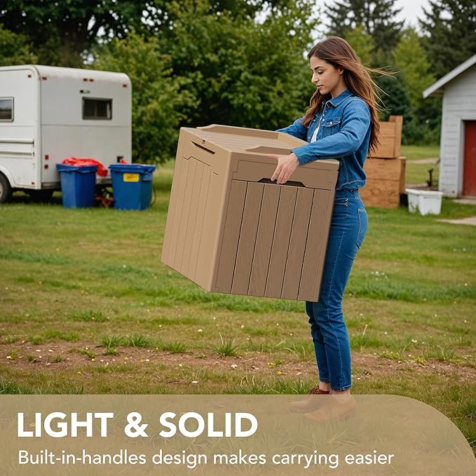 Devoko 30 Gallon Resin Deck Box Outdoor Indoor Waterproof Storage Box for Patio Furniture Pool Accessories Storage for Cushion Garden Tools (30 Gallon, Light Brown)