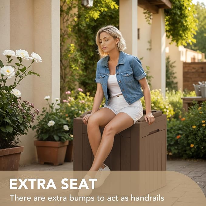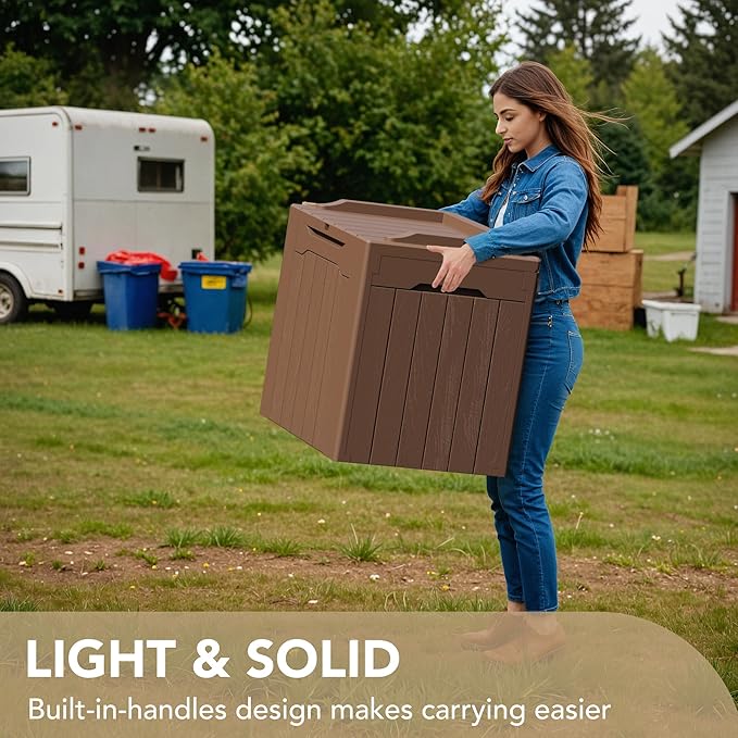 Devoko 30 Gallon Resin Deck Box Outdoor Indoor Waterproof Storage Box for Patio Furniture Pool Accessories Storage for Cushion Garden Tools (30 Gallon, Brown)
