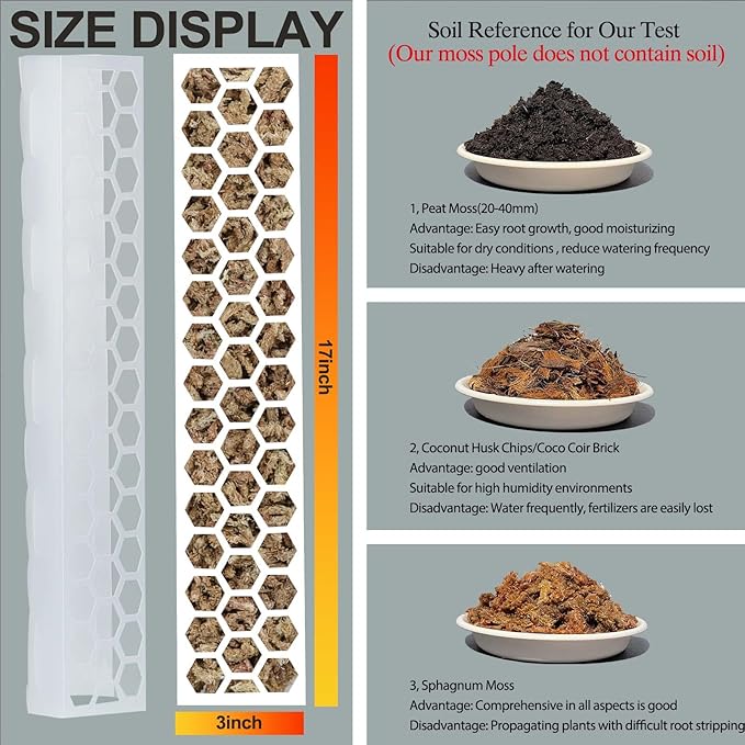 - [Perfect an Ideal Growth Environment] We strongly suggest using sphagnum moss or soil mix with our plant sticks for best effect because it can provide water and micronutrients for creeping plants for a long time. Besides, plastic Moss Pole will not end up rotting.