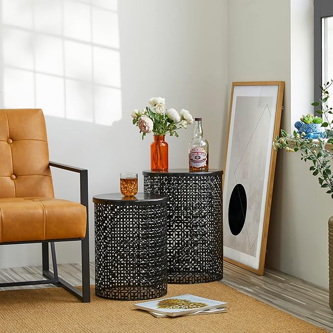 - Multifunctional: The set of 2 multifunctional side tables can be great as an end/side table, nightstand, accent table, plant stand in the living room, bedroom, balcony, office and can work as decorative garden stool for garden, patio, deck and backyard. It will be a perfect accent whether placing together or individually.