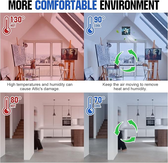 - 【CLEAN AND FRESH】-- Up to 2400CFM airflow and 3000 square feet of space cooling. Perfect for removing heat and humidity from the room. Brings fresh air to your house and family, creating a comfortable air environment.