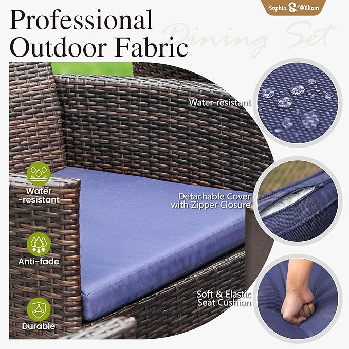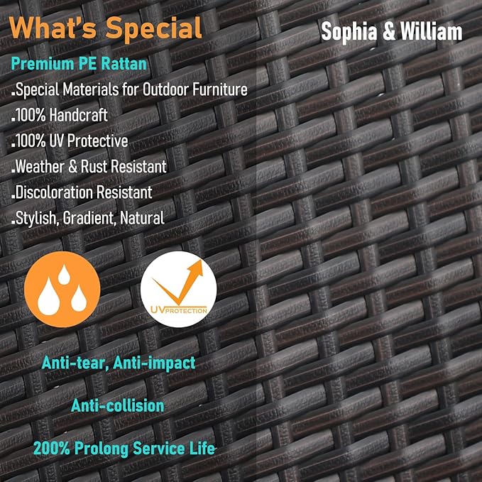- Durable Rattan Material: Our outdoor dining chair features exquisite handwoven PE wicker, providing a sophisticated and elegant look that enhances any outdoor setting while offering superior durability. Load capacity: 330 lbs. Dimension: 22.8" D x 24" W x 34.5" H, seat: 19.5" W x 19.5" D