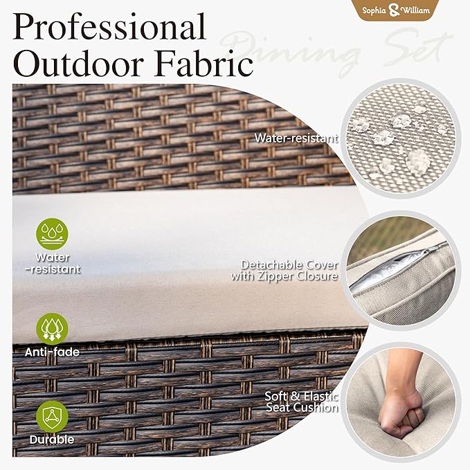 Sophia & William 9 Pieces Patio Dining Set for 8, All Weather Square Outdoor Table with Umbrella Hole, 8 Rattan Chairs with Cushions, Large Patio Table and Chairs Set for Outside, Black Tabletop