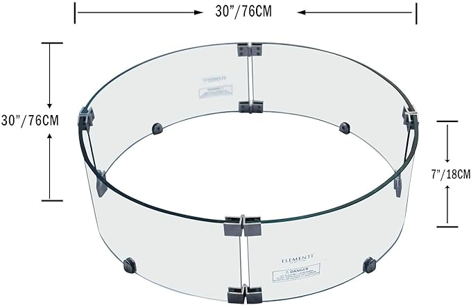 - Dimensions: Lunar Bowl Fire Pit - 42” L x 42” W x 16” H, 143 lbs; Burner Ring - 12” Dia; Glass Wind Screen - 30” L x 30” W x 7” H; Canvas cover - 43.3" Dia. x 16.5" H; Stainless Steel Cover - 29” L x 29” W x 1” H; Lava Rocks - 24 lbs