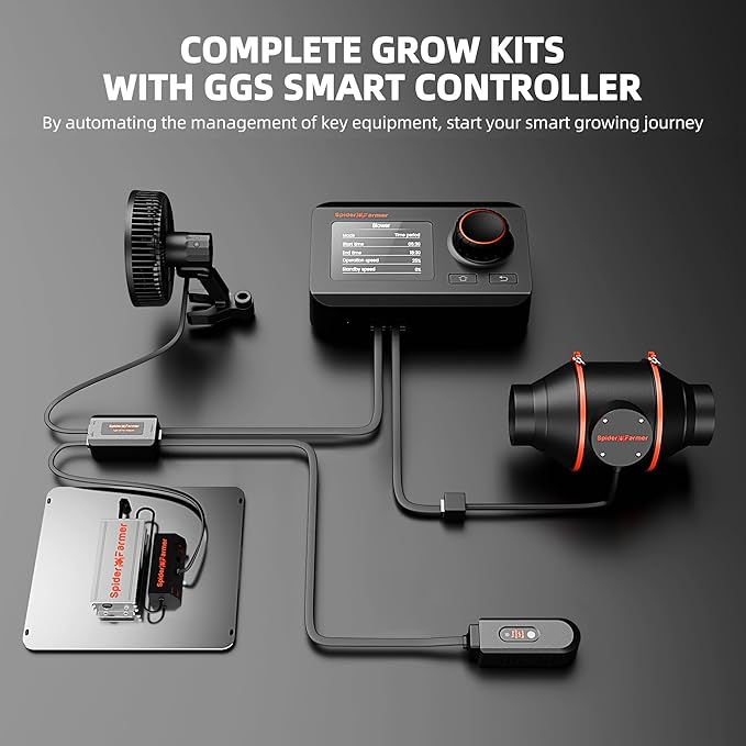 - Smart Environmental Controller: It integrates with various monitoring devices, including temp/humidity/light sensors, and is managed via the Spider Farmer app or manually operated. You can easily customize the light with 0%-100% dimming, grow cycles timer on/off schedule, adjust inline fan speed control over airflow, clip fan running speed & oscillating head angle. Ensures your plants thrive under optimal conditions