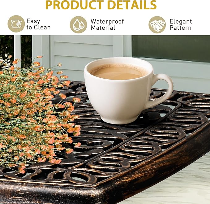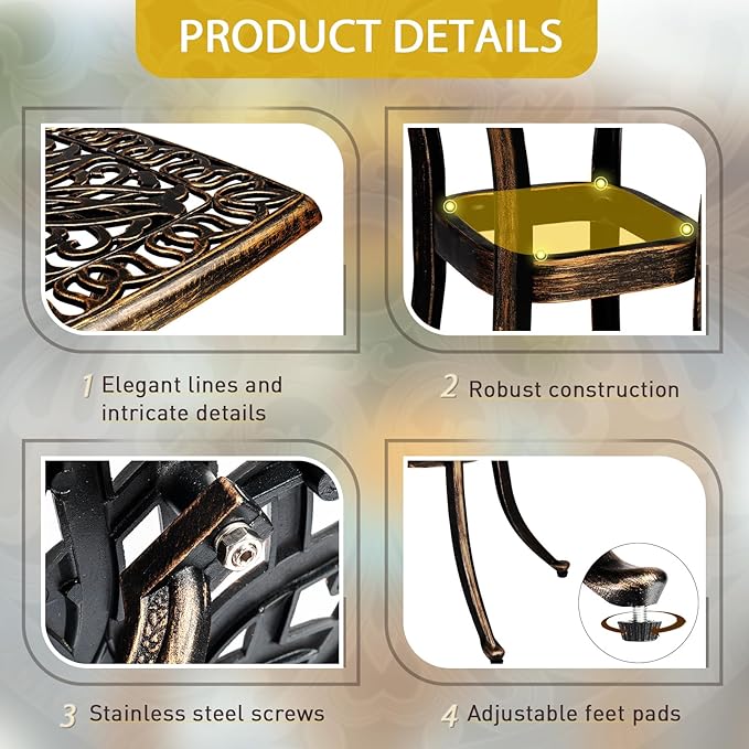 - PREMIUM CAST ALUMINUM: Crafted from high-quality cast aluminum, this square bistro table is built to withstand the elements. With exceptional durability, weather resistance and rust-proof features, it ensures long-lasting outdoor enjoyment with minimal maintenance required
