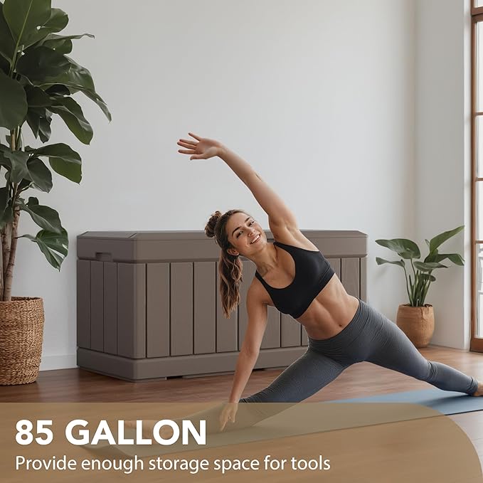 - Ideal Storage: 46'' x 21.3'' x 23.3''. The large-capacity outdoor storage box can hold 85 gallons and is suitable for storing outdoor furniture Cushion, garden tools, etc