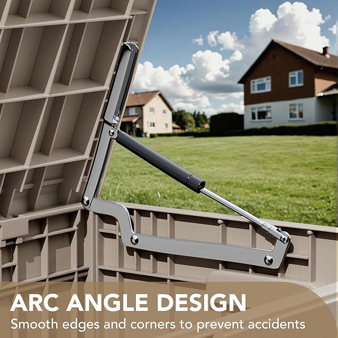 - Careful Design: The lockable deck box can protect the safety of internal articles. The double hydraulic gas rod design makes the top of box open easily or close slowly. The side handle provides convenience for moving