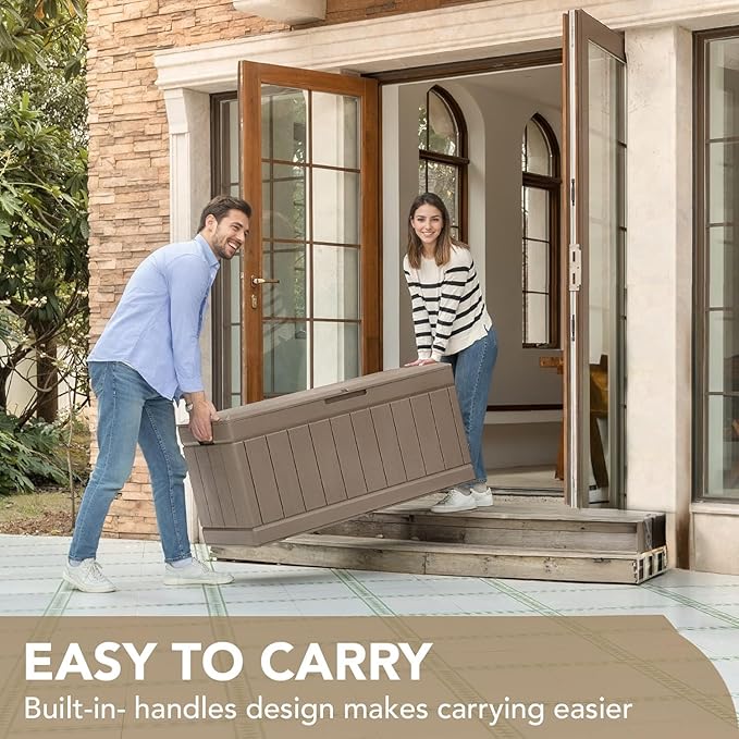 Devoko 85 Gallon Deck Box Lockable Resin Outdoor Storage Box waterproof Outdoor Container for Patio Furniture Cushions, Pillow (Light Brown)