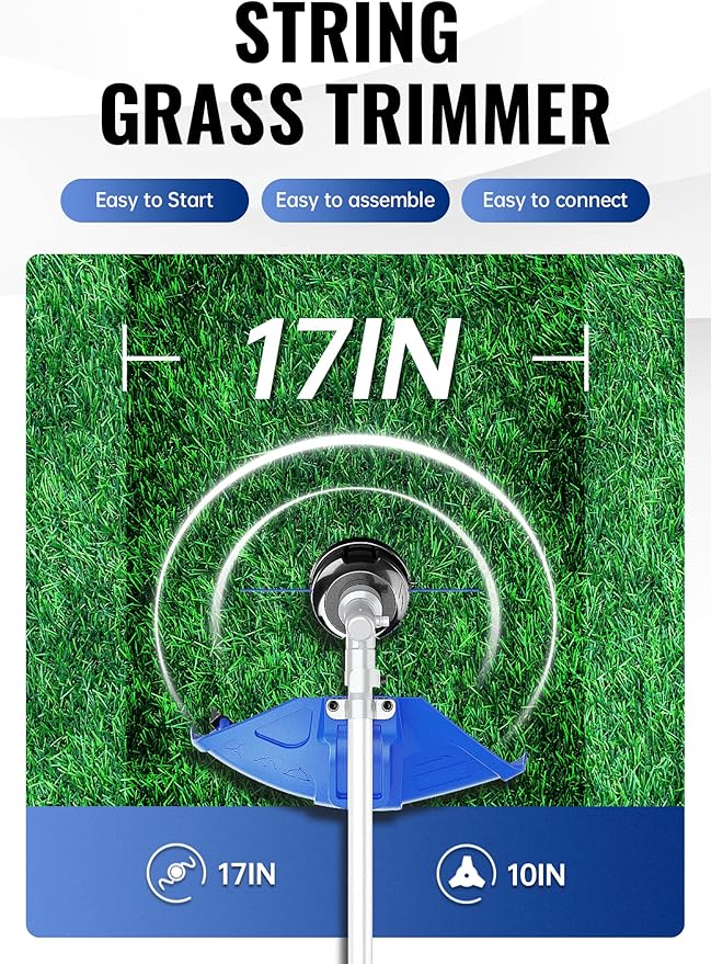 - 4 in 1 Multifunction:17" String Trimmer/Edger, 9" Wheeled Edger, 16" Hedge Trimmer and 10" Brush Cutter included.
