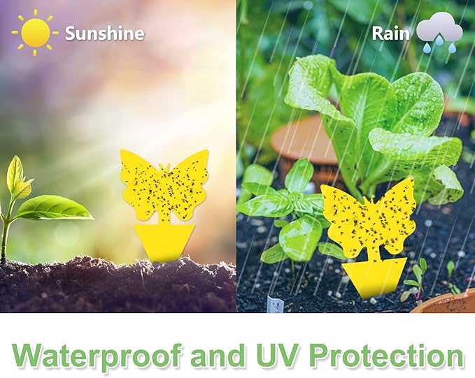 - Long lasting: gnats killer indoor trap paper with a very strong adhesive, sticky traps for gnats are uv resistant and waterproof. No need to replace the houseplant insect catcher until fully covered with bugs.