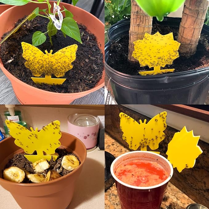 - Fruit Fly Trap: bright color attract flying insects, and glue keeps them from escaping. Specially designed for flying plant pests. yellow sticky traps for gnats is great for outdoor or indoor plant, especially potted plants.
