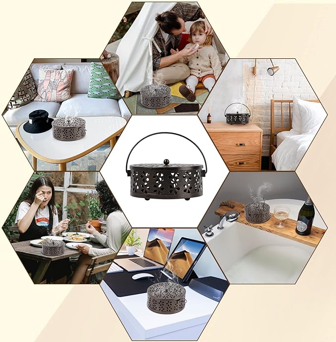 - Applicable Place: Mosquito incense holder can be used in bedrooms, living rooms, offices, balconies, terraces, etc. and can also bring you a comfortable place when camping.
