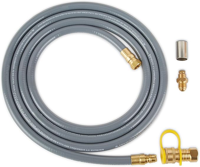 - Propane or Natural Gas: Includes a 9 foot LP hose with regulator, and a natural gas conversion kit with 10 foot NG hose and quick connect socket. Can be converted to natural gas by a certified gas technician.