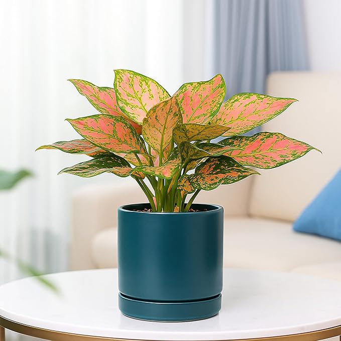 D'vine Dev 4.7 Inch & 6.5 Inch Ceramic Planter Pots for Plants with Drainage Hole and Saucer, Small Plant Pots Set, Teal, 94-G-S-9