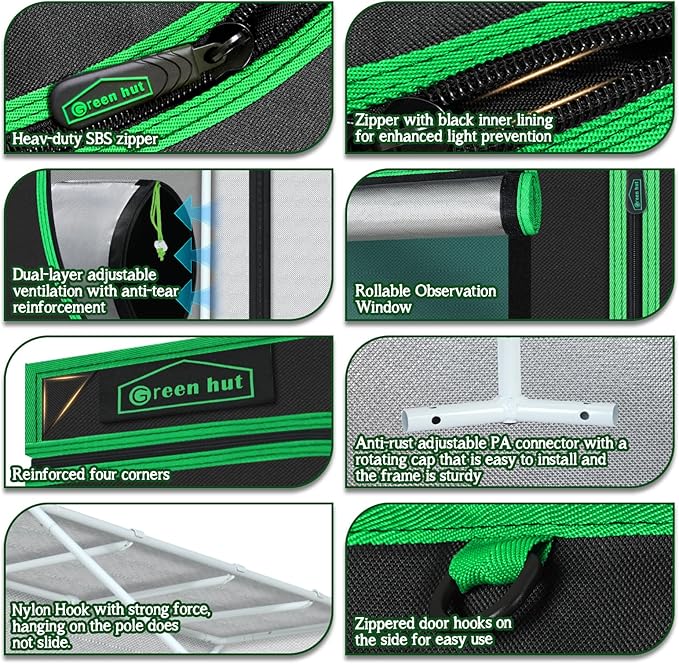- LIGHT PROOF ¡ª The large heavy duty Zippers & 1.5" ribbon protect the tent from light leaking and ensure durability and long-lasting use. Let you control the climate and lighting so you can grow any plant in any place safely and easily
