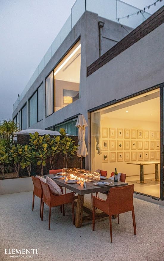 Elementi | Sonoma Gas Fire Pit Cast Concrete Rectangular Dining Fire Table, Outdoor Fire Pit Electronic Ignition | Canvas Cover, Lava Rock Included | Natural Gas