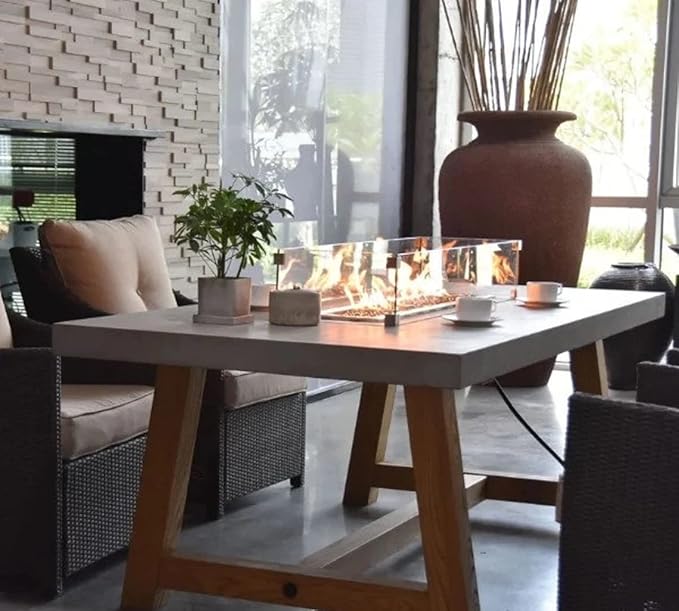 Elementi | Sonoma Gas Fire Pit Cast Concrete Rectangular Dining Fire Table, Outdoor Fire Pit Electronic Ignition | Canvas Cover, Lava Rock Included | Propane Gas