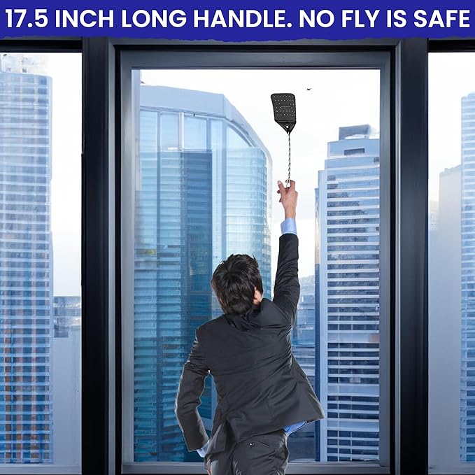 - 17.5 INCH LONG HANDLE. This fly swatters multi pack includes 2 long handle fly swatters. The flyswatter heavy duty long handle allows you to reach flies hiding in hard to reach places.