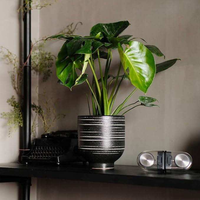 - Attractive Modern Design - Add modern beauty to your patio, office, or living room with the HERDUK’s ceramic planter. This weather-resistant planter is made from ceramic with a striped pattern and crisp glazed black finish. Featuring striped pattern, this planter can be arranged to create a range of striking displays with green plants, bright flowers, or easy succulents.