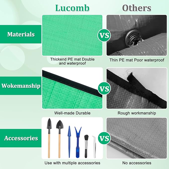 - Protects Surfaces: Our plant repotting mat is designed to protect your surfaces from dirt, water, and debris during the repotting process. It's made of high-quality thickened PE material and a double PVC coating that is waterproof and durable, ensuring that your floors, countertops, or tables stay clean and free from stains or damage.