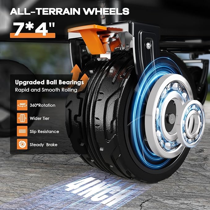 - 【Long-Lasting Efficient Transport】: Wide wheels do better on complex terrains. The sturdy wheels are made of PP+PVC, which has perfect maneuverability and higher transportation efficiency than others. It can roll over obstructions such as rocks, roots, and even curbs. The wheels have double bearings to maximize the carrying capacity and safety, which reflect its performance. Keep in mind, though, wagons don't work on soft sand.