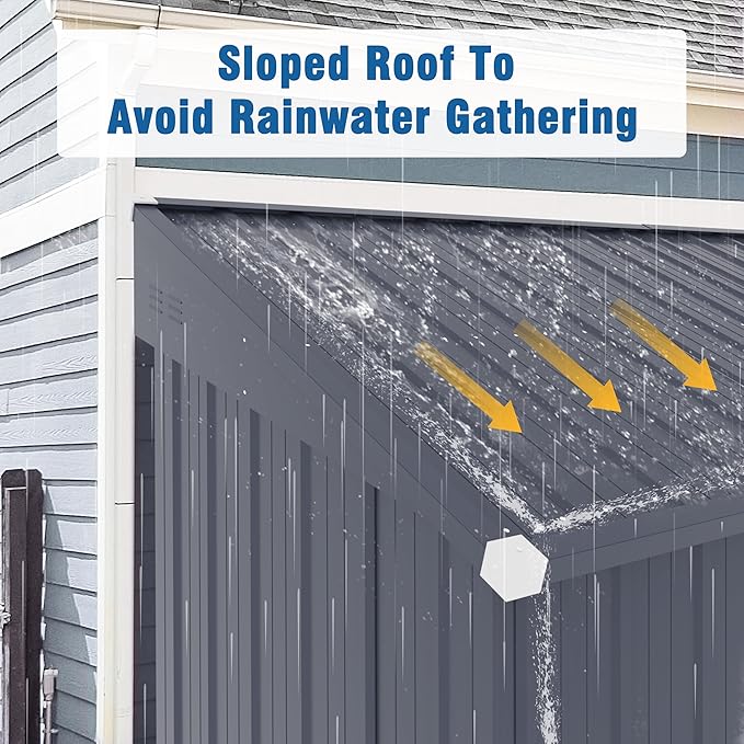 - 【2 VENTS & SLOPED ROOF】Two vents could definitely offer you better airflow when using this lean-to shed to store tools, bikes and more. The house-like sloped rooftop design would protect all your belongings from rain and snow, and decorate your garden in a traditional way. The design of the sloped roof allows this outdoor storage shed to be close to the wall to save you space and enhance the wind resistance of your metal outdoor lean-to shed.