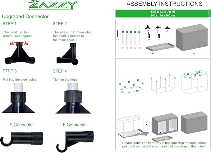 - Tool-Free Fast Installation--- Our grow tents are easy and fast to install without tools even if you've never done something like this before. The package includes the user-friendly and professional instruction well for easy set up.