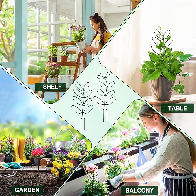 - Leaf Shape: The plant support for indoor plants is designed in the shape of plant leaves, which can well support the growth of your plants. The leaf shaped design of the houseplant trellis can also decorate your flowerpot and integrate with your plants