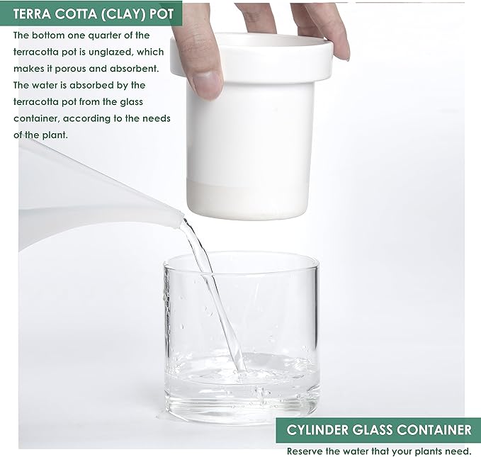 - Self-Watering System: The bottom quarter of the terracotta pot is unglazed, allowing plants to absorb water through the pot walls.