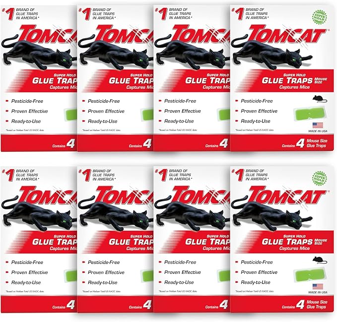 Tomcat Super Hold Glue Traps Mouse Size, 8-Pack (32 Glue Traps)