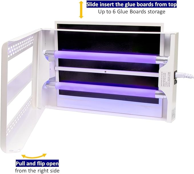 - Safe and Eco-Friendly Design: This lamp utilizes 2 x T8/BL LED tube to attract pests to the lamp due to the irresistible light, which captures the pests onto a sticky glue board. The glue boards are coated with a special non-toxic attractant that is safe to use, which should be replaced every 2-3 months for most effective results. This fly trap utilizes the type E glue boards. The combo comes with 6 pieces of type E glue boards.