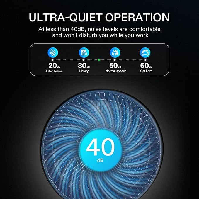 - Strong Airflow & Low Noise: At just 40 dB at its loudest, this fan runs ultra-quiet, and with an upgraded 20W copper motor still produces powerful airflow for coolness you can feel even from a distance
