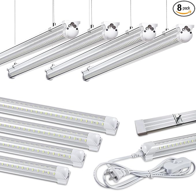 8Pack 4FT LED Shop Light Garage Lights,50W 6000K 7500LM White Light,Hanging/Surface Mount,T8 4FT Tube Lamp for Warehouse Workshop Basement,Linkable LED Shop Lights,Plug and Play