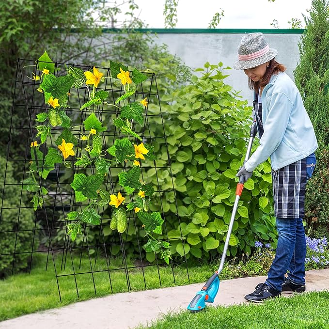 - A-FRAME DESIGN -- A-frame cucumber trellis can grow various plants from both sides of the trellis. These shapes promote airflow for the climber, and the plant will have plenty of sunlight to maximize photosynthesis. Let you get a better harvest.
