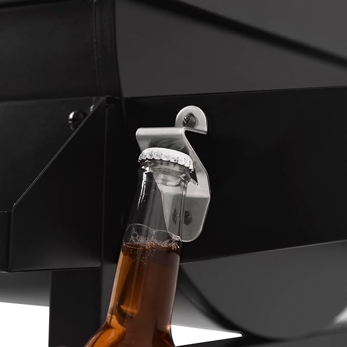 - User-Friendly Accessories: It comes with a bottle opener for you to enjoy drinks whenever you want and a grease cup holder for you to hang a small bucket to catch dripping grease