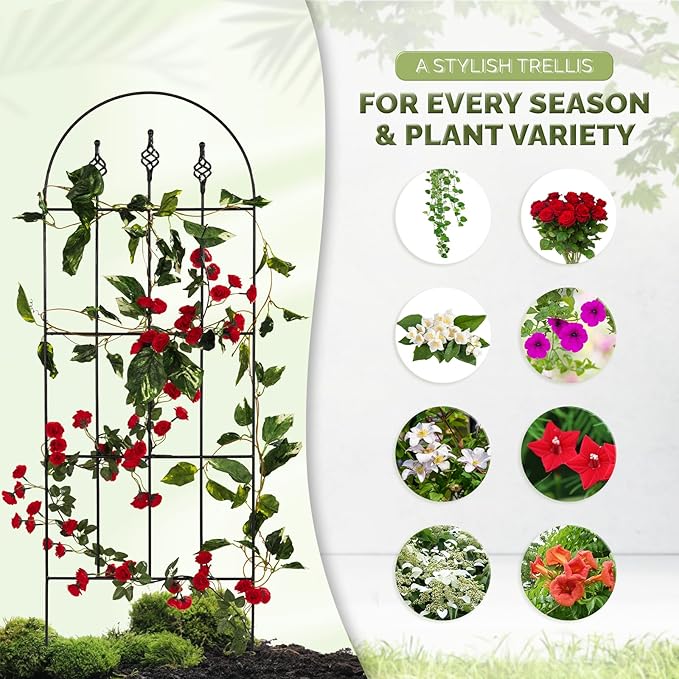- π SUPPORT MULTIPLE CLIMBING PLANTS: Whether it's delicate vines, vibrant roses, or fragrant jasmine, our garden trellis can handle the weight and growth of various climbing flowers