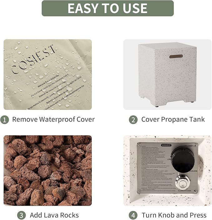 - 🔥【 Perfect Hideaway 】: We use clean-burning propane fire pits but still want to keep the unsightly take tucked away out of view. That's why COSIEST makes this beautiful and ingeniously simple tank cover. Not only is it beautiful and durable, made from the same fire-retardant magnesium oxide and steel as our fire pits and tables, But It's also functional as a convenient side table that goes well with modern outdoor furniture decor with its simple clean lines.
