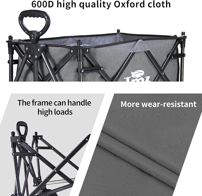 TMZ Collapsible Folding Wagon Cart, Outdoor Utility Garden Cart, Heavy Duty Camping Wagon with Big Wheels, Foldable Wagon for Sports, Shopping, Fishing and Beach-Grey